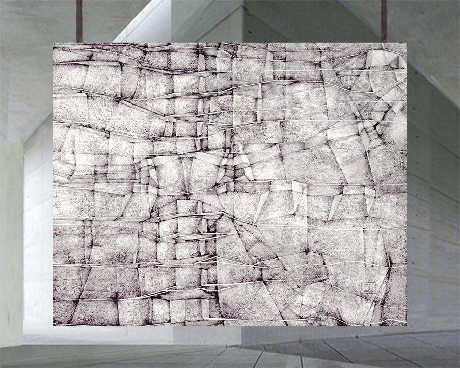 mixed techniques pencil, varnish, canvas on wood