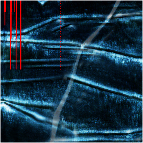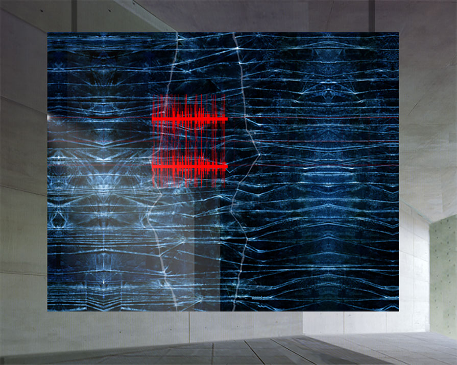 Homage to Luigi Nono. The red figuration is the authentic representation of Luigi Nono`s composition "Silence, A Diotima"