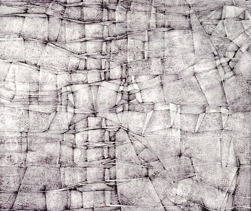 mixed techniques pencil, varnish, canvas on wood
